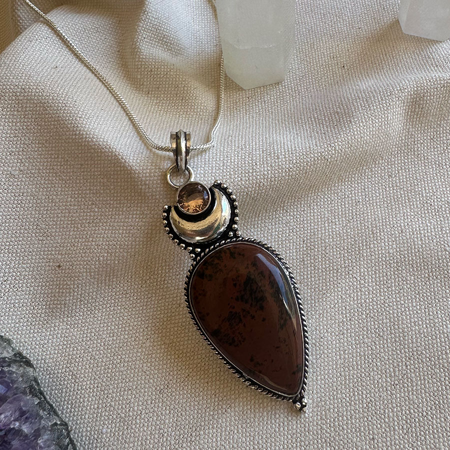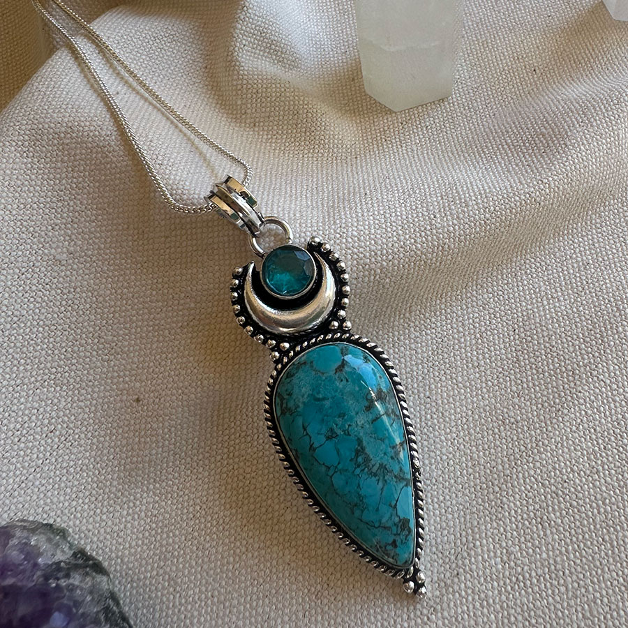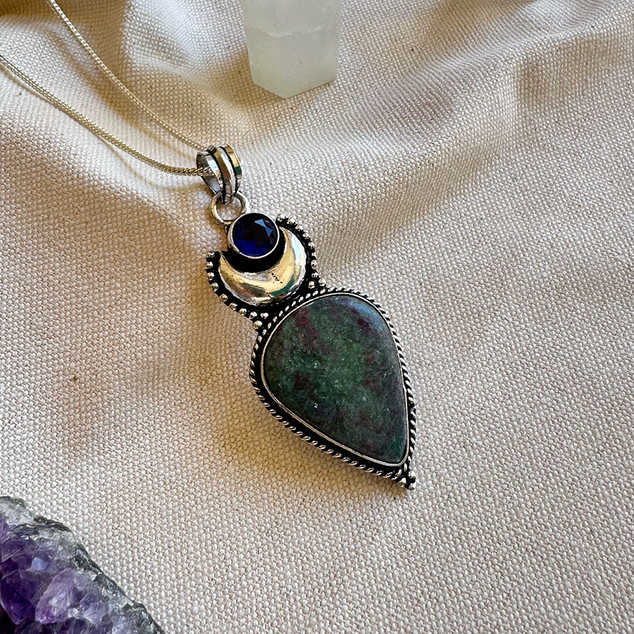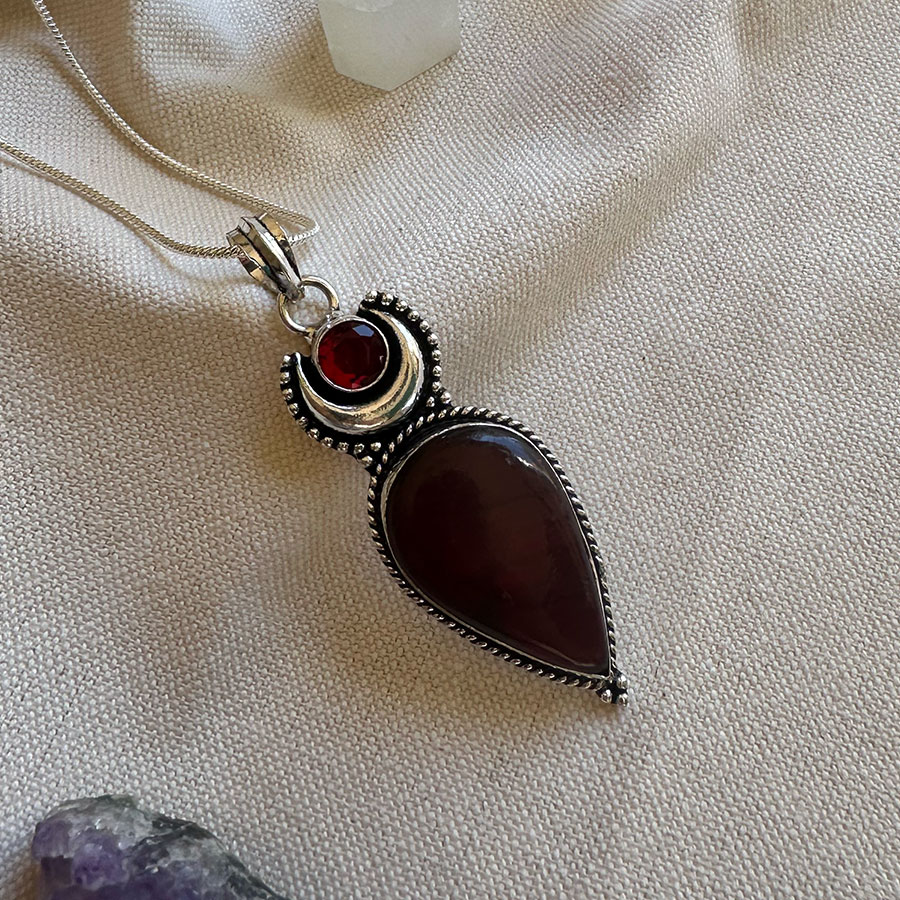 Colgante de Piedra natural con un delicado decorado en plata 925 .
