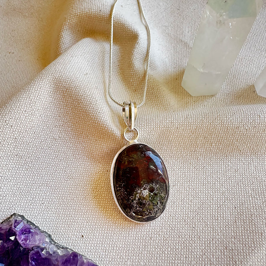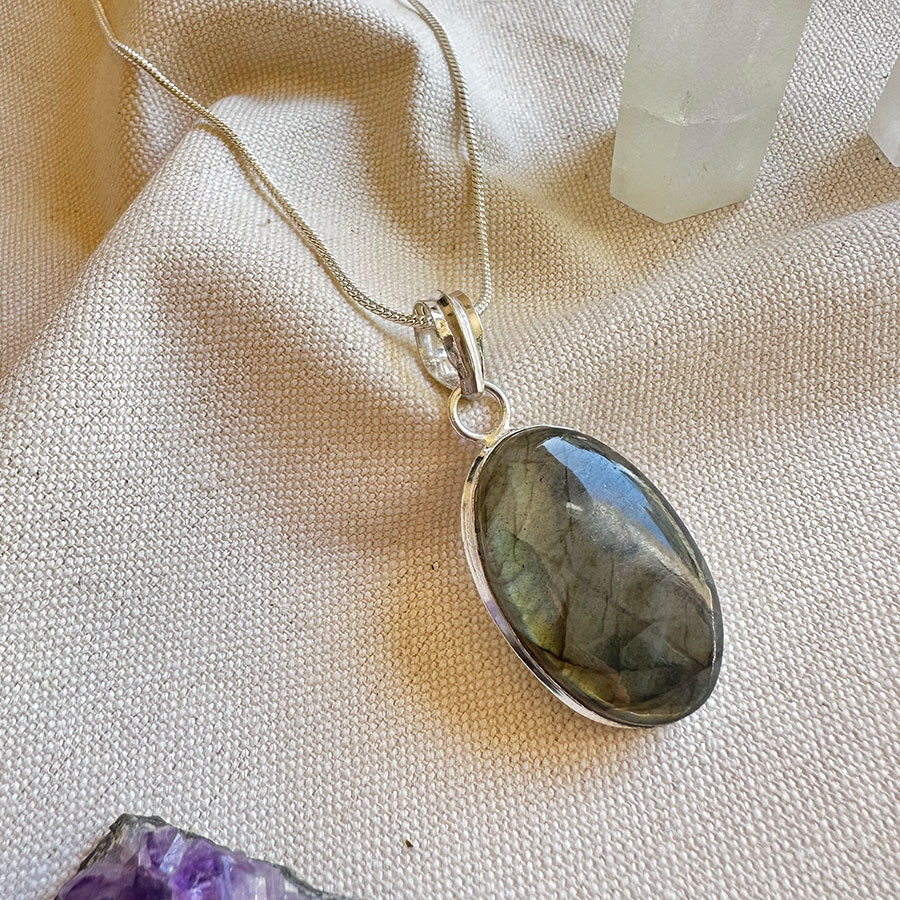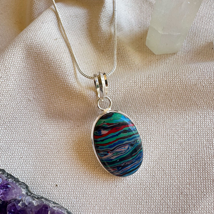 Colgante de Piedra natural con un delicado decorado en plata 925 .