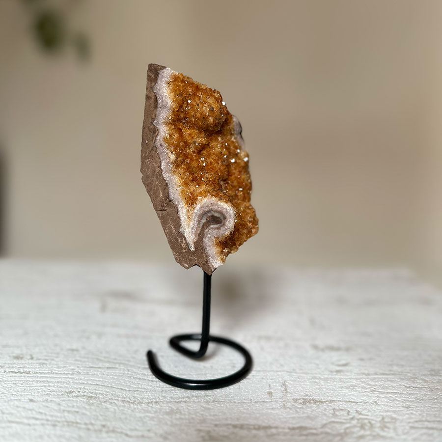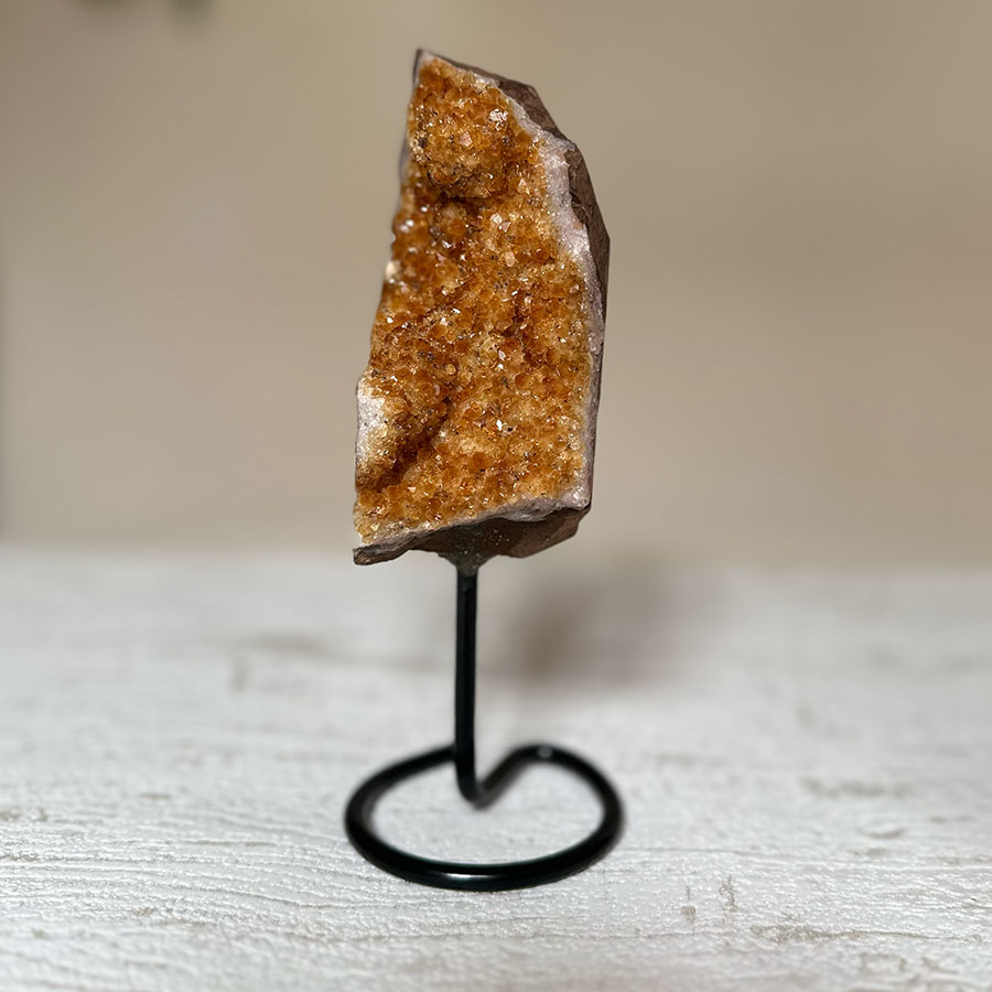 El cuarzo citrino se asocia al 3º y 7º chakra. Representa la fuerza solar y está relacionado con la creatividad y la prosperidad, con lo que suele usarse para activar y emprender ideas y proyectos. Favorece la asimilación, tanto a nivel físico y nutritivo como a nivel emocional y espiritual. Ayuda a activar la vitalidad, a desarrollar la voluntad, la capacidad de tomar decisiones y la intuición.También se cree que el citrino tiene propiedades curativas y puede mejorar la digestión y la circulación sanguínea.