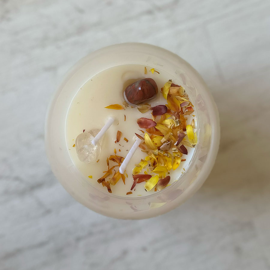 Creada con aceite esencial eucalipto limón el cual nos ayuda a sentirnos estimulados, con energía para realizar nuestros objetivos y ayuda a la concentración mental, junto con el jaspe rojo y el cuarzo cristal que con sus propiedades nos ayudarán a conectar con nuestra creatividad y concretar los deseos que tengamos.